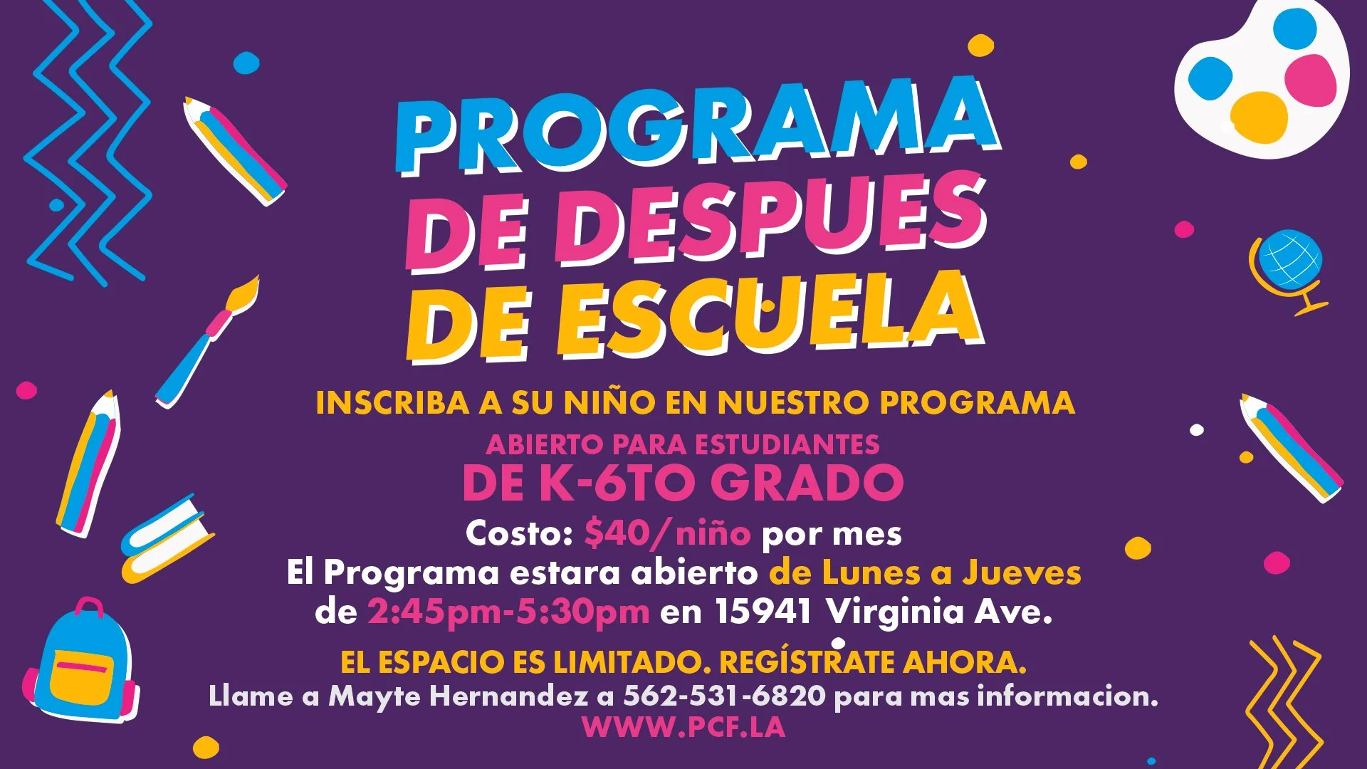 Space is limited. Please contact Mayte Hernandez for more information or to enroll your child.